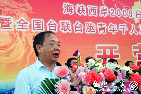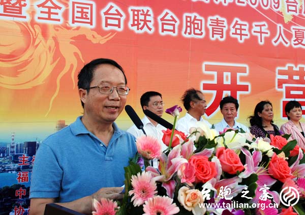 全國(guó)臺(tái)聯(lián)副會(huì)長(zhǎng)、福建省臺(tái)聯(lián)會(huì)長(zhǎng)陳耀中代表主辦單位講話(huà),他對(duì)臺(tái)灣學(xué)子和朋友們的到來(lái)表示最熱烈的歡迎,他說(shuō):福建與臺(tái)灣最近距離只有80多海里,臺(tái)胞中有80%的祖籍地在福建,具有“地緣近、血緣親、文緣深、商緣廣、法緣廣”的獨(dú)特區(qū)位和人文優(yōu)勢(shì)。今年5月,國(guó)務(wù)院頒發(fā)了《關(guān)于支持福建省加快建設(shè)海峽西岸經(jīng)濟(jì)區(qū)的若干意見(jiàn)》,明確要求福建省在兩岸人民交流合作先行先試,推動(dòng)兩岸大交流、大合作。福建省成為兩岸同胞共同發(fā)展的基地,也是經(jīng)濟(jì)持續(xù)發(fā)展、文化更加繁榮、綜合競(jìng)爭(zhēng)力不斷增加、人民群眾安居樂(lè)業(yè)和諧區(qū)。他希望本次夏令營(yíng)能給營(yíng)員們一個(gè)兩岸青年交流、聯(lián)系的平臺(tái),也希望各位營(yíng)員都能成為兩岸民間交流的友好使者。兩岸青年攜起手來(lái),為兩岸的發(fā)展和繁榮,為建設(shè)我們共同的家園,為炎黃子孫的興旺發(fā)達(dá)作出貢獻(xiàn)。