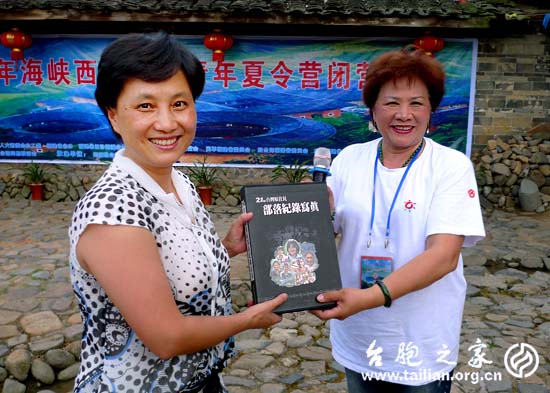 福建省致公黨、省民革、省政協(xié)臺港澳僑委、省臺聯(lián)、漳州市委統(tǒng)戰(zhàn)部、漳州市臺聯(lián)及南靖縣委統(tǒng)戰(zhàn)部、南靖縣臺聯(lián)的領(lǐng)導(dǎo)參加了閉營儀式。閉營儀式由福建省臺聯(lián)葉露昆副會長主持、福建省人大臺港澳僑委盧德昌及南靖縣委常委、統(tǒng)戰(zhàn)部鐘曉娟部長致辭,他們表示歡迎臺灣的學(xué)子到南靖來參觀,也希望以后兩岸的交流能更加密切。隨后,福建參訪團的團長及學(xué)員代表也作了發(fā)言,他們表示十分感謝全國臺聯(lián)組織了這么有意義的交流活動,也感謝省、市及地方臺聯(lián)的大力支持,使夏令營福建分營的臺胞青年能更為深入地了解了僅有一水之隔,語言、文化相同的廣大臺胞祖籍地之一的福建。