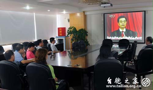 臺胞之家網(wǎng)訊:今天上午10點(diǎn),慶祝中國共產(chǎn)黨成立90周年大會在人民大會堂隆重召開。福建省臺聯(lián)及時布置收聽收看慶祝大會轉(zhuǎn)播實(shí)況,省臺聯(lián)副會長葉露昆、柯連妹與機(jī)關(guān)全體工作人員懷著激動和崇敬的心情,準(zhǔn)時在會議室等候并收看轉(zhuǎn)播,聆聽中共中央總書記胡錦濤在大會上的重要講話。