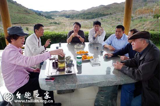 省臺(tái)聯(lián)一行與“摩天嶺農(nóng)業(yè)有限公司”董事長傅金池先生泡茶品甜柿 鄭嵐/攝影