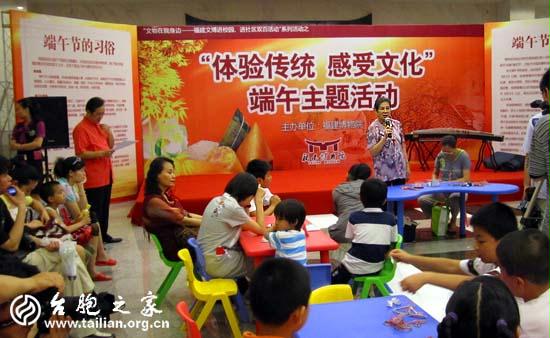 臺胞之家網(wǎng)訊:6月6日(端午節(jié))下午,為了弘揚民俗文化,福建省政協(xié)特邀委員、臺灣畫家吳清菊女士帶領(lǐng)著四個臺灣家庭一行19人與福州華南優(yōu)教所實驗小學(xué)、福州晉安區(qū)第二中心小學(xué)的部分師生一道,在省博物院體驗福州端午民俗文化。