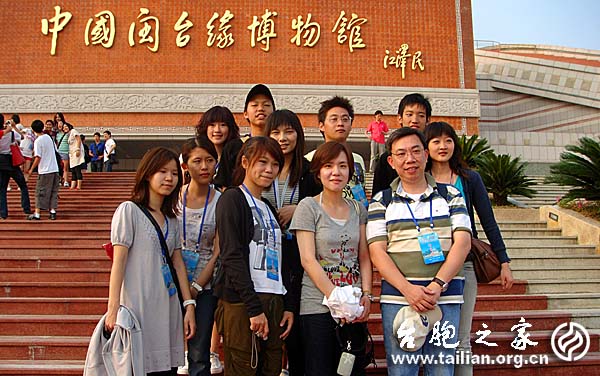 臺(tái)胞之家網(wǎng)訊:7月9日,來(lái)自臺(tái)灣28所大學(xué)、8個(gè)國(guó)家與地區(qū)的93名臺(tái)胞大學(xué)生組成的“海峽西岸2009年臺(tái)胞青年夏令營(yíng)”的營(yíng)員抵達(dá)泉州市,走進(jìn)了“中國(guó)閩臺(tái)緣博物館”。 陽(yáng)光下,雄渾的“閩臺(tái)緣博物館”在清源名山和西湖碧水的映襯下,有著不同凡響的獨(dú)特魅力。館樓正面那兩道橘紅色的半弧形屋面斜階,宛若一雙張開熱情洋溢的臂膀,歡迎來(lái)自海峽東岸的青年朋友們?! ∽哌M(jìn)雄偉壯觀的博物館二樓主題館展廳,首先撲入眼簾的是是那幅火藥爆繪壁畫,看到用火藥爆繪而成的碩大的榕樹以及畫布上時(shí)隱時(shí)現(xiàn)的百家姓,青年臺(tái)胞們被深深吸引住了,紛紛用手中的相機(jī)拍下難忘的畫面。